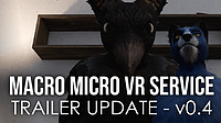 After a long time I finally publish the trailer of the new version! This trailer showcases the current content of the Macro Micro VR Service - v0.4.1.1 update. Macro Micro VR Service (MMVS) is a furry...
